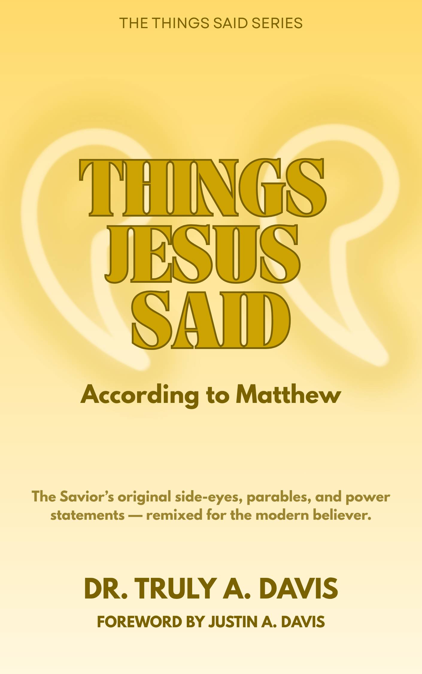 Things Jesus Said: According to Matthew takes the direct words of Jesus and translates them into modern life with bold clarity, Detroit edge, and a little sass — because Jesus didn’t mumble, and you shouldn’t have to decode His message.